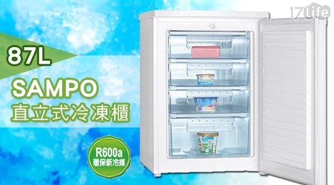 只要8,149元(含運)即可享有【SAMPO聲寶】原價9,900元87L直立式冷凍櫃(SRF-90S)1台(不含安裝),享1年保固。