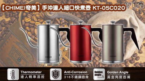 只要2,280元(含運)即可享有【CHIMEI 奇美】原價2,488元手沖達人細口快煮壺(KT-05C020)1入,顏色:名人紅/師匠銀/達人灰,享1年保固!